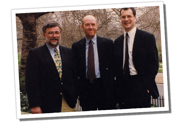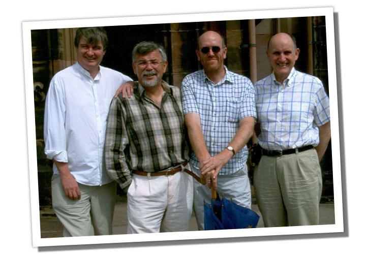 Excellent sales and a host of happy publishers see Alan L, Edwin, Alan J, and Finance Director Ronnie Shanks in sunny spirits in 2005.