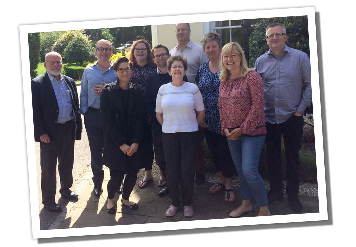 In 2017 Alan Jessop’s health suddenly takes a dramatic turn for the worse as he is diagnosed with autoimmune encephalitis. He goes on long term sick leave and later that year the company welcomes Simon Kingsley as UK Trade Sales Director. Here are some of the team at our summer sales conference with Michael Schmidt and Katie Caunt from Carcanet.