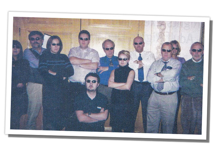 The first seven publishers to sign up were Canongate, Prion, Writers and Readers, Mercier Press, O’Brien Press and New Island Books. They were shortly joined by Allison and Busby, Carlton, Plexus and Serpent’s Tail. Over the years, Compass has sometimes been a victim of its own success, with publishers’ sales growing to such an extent that employing their own dedicated sales force can then become a viable option, and our services are no longer required! Compass is proud to remain on good terms with its past clients, and we recognise that circumstances can change. We have always been in the happy position of having a waiting list of potential clients, eager to join the Compass family. Here you see the Compass reps in gangster mode in 2001, as the team practice their sales pitch for the Atlantic bestseller Killing Pablo.