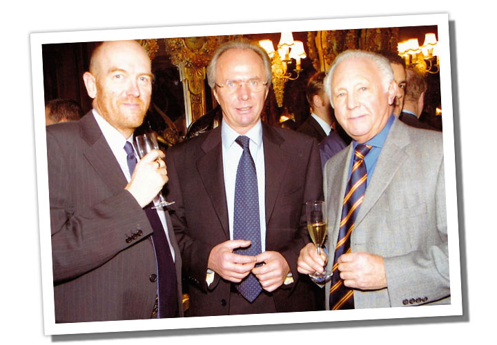Alan, the England Football Team Manager Sven Goran Erikson and Chairman of Gardners Alan Little discuss a promotion for a range of titles celebrating the 2002 World Cup.