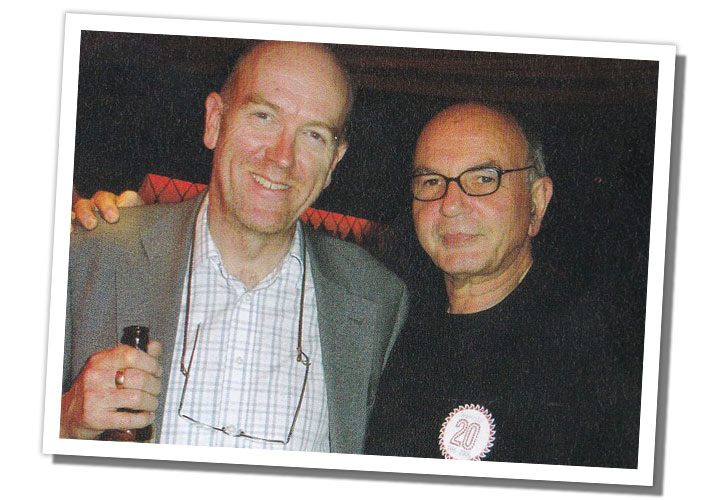 Founder of Serpent’s Tail Pete Ayrton with Alan Jessop as the publisher celebrates their 20th birthday in 2006. We Need to Talk About Kevin has been a huge success for the publisher the previous year.